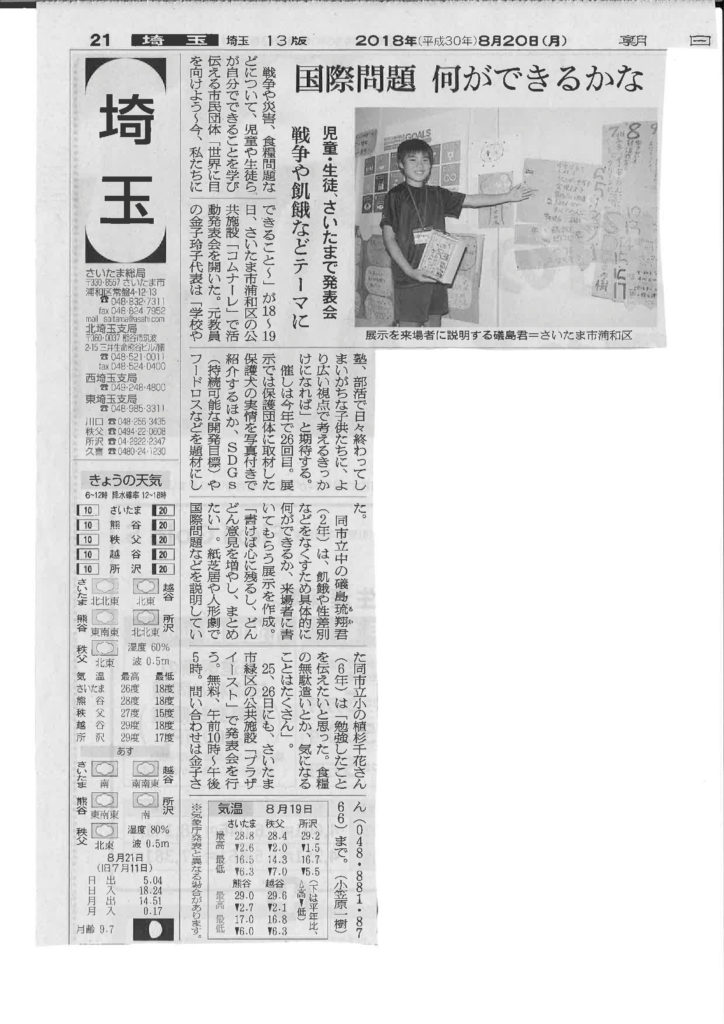 この活動が朝日新聞8月20日付け埼玉県版に掲載されました。