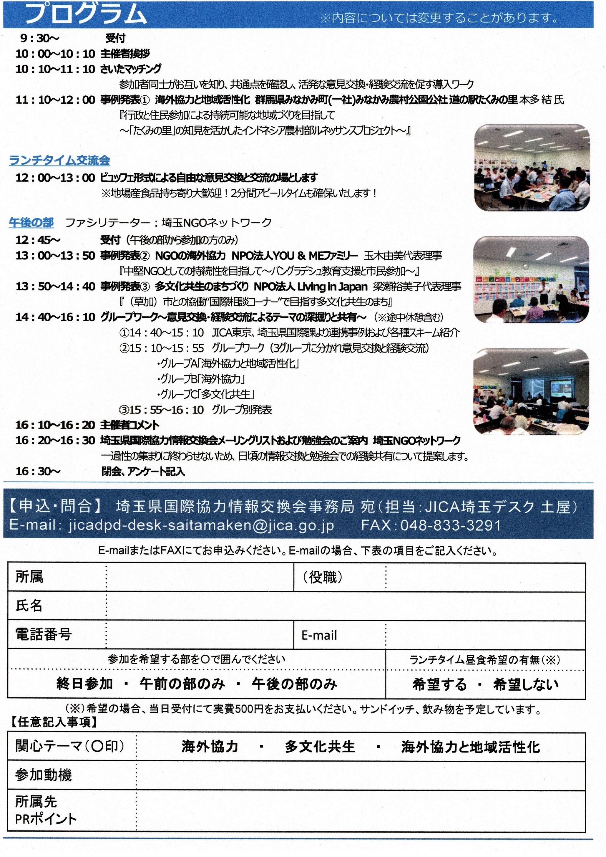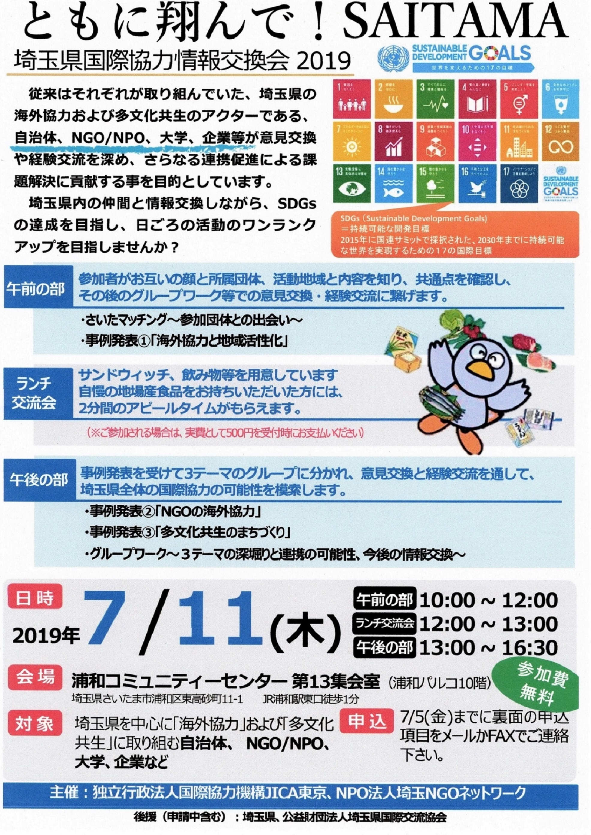 参加申込:埼玉県国際協力情報交換会事務局Jica-desk-saitamaken@jica.go.jp