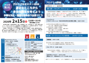 埼玉NGOネットワーク主催で「グローバルセミナー2026」を2026年2月15日(日)に開催いたします。